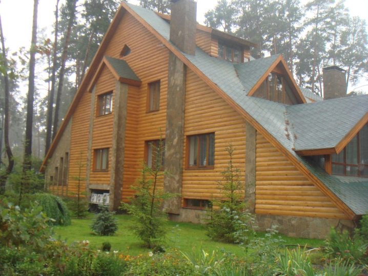 Облицовката на къщата с блок къща отвън изглежда оригинална; такива сгради в скандинавски стил изглеждат добре в крайградска зона, заобиколена от природата. За да изглежда цялостният фон хармонично, дограмата също трябва да бъде дървена, а не пластмасова. Покривът може да бъде покрит със зелени керемиди: той върви добре с кафяви нюанси.