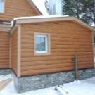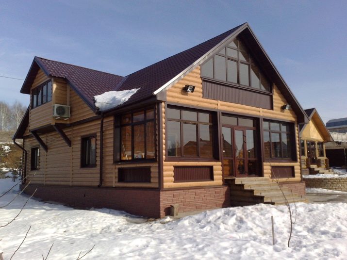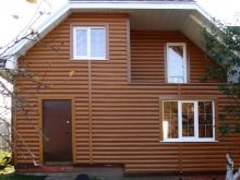 В допълнение, материалът осигурява на конструкцията допълнителна топлоизолация, както и защита от негативни фактори на околната среда.. И имитацията на къща от дървен блок говори за уважение и добър вкус на собствениците..