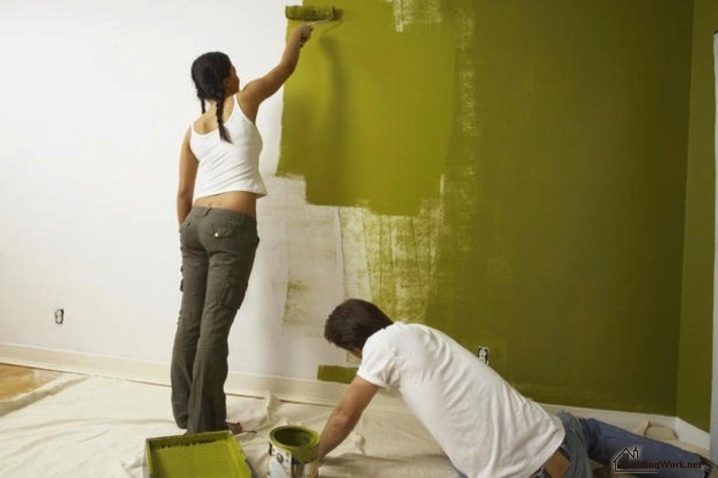 Акрилната версия се използва повече за боядисване на стени в къщата, може да се използва и за боядисване на тавана.
