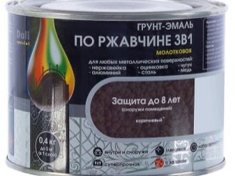 - Специален “Грунд-емайл за ръжда 3 в 1” подходящ както за боядисване на метални конструкции с очевидни признаци на корозия, така и за обработка на метал без ръжда. Подходящ за използване на открито. Основното условие е, че не може да се нанася върху бои, направени на нитратна основа. Отзивите потвърждават високата ефективност на тази смес в борбата с корозията, а купувачите подчертават нейната икономична консумация и широка гама от цветове..