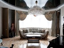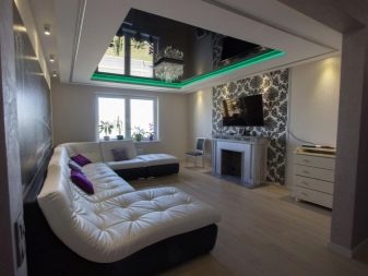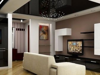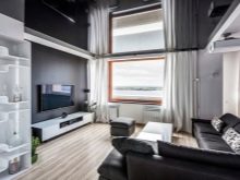 Използвайки черни опънати тавани в правилната посока, което се отнася до формирането на общия стил, стаята може да бъде визуално направена по -дълбока и по -обемна, като в същото време придава уникален чар и подчертава изтънчеността на вкусовите предпочитания на собственика.