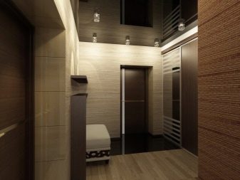 Коридорите или коридорите трябва да бъдат украсени със сатенени изделия, които омекотяват студения черен цвят, правейки го дълбок. Малките стаи са най -добре проектирани с ясни и правилни геометрични форми. В такива случаи абстракцията ще помогне – визуално ще увеличи стаята..