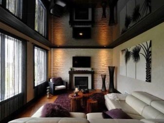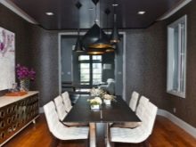Що се отнася до стила на дизайн, няма еднозначно мнение, когато е за предпочитане да се използват такива материали.. С правилното и стриктно спазване на една единствена дизайнерска линия, черните тавани ще се превърнат в оригинално допълнение към всеки стил (от консервативен минимализъм или класика до съвременни високотехнологични тенденции).