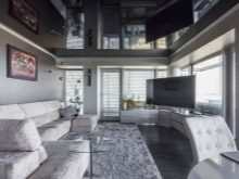 Черните тавани имат много отзиви, сред които има положителни и отрицателни. Както отбелязват много собственици на апартаменти, където се използват лъскави черни тавани, те са категорично неподходящи за помещения с малка площ и минимална естествена светлина. За да не изпитвате дискомфорт, стая с черен таван трябва да има големи прозорци. Стая с прозорци към пода би била идеална..