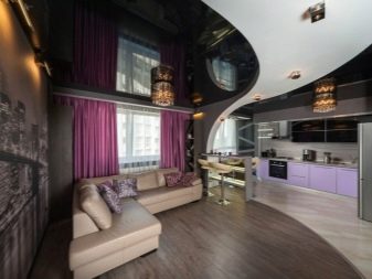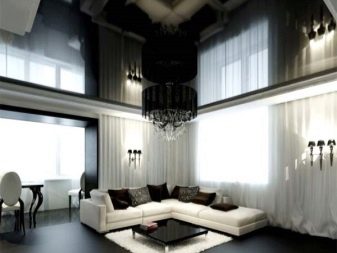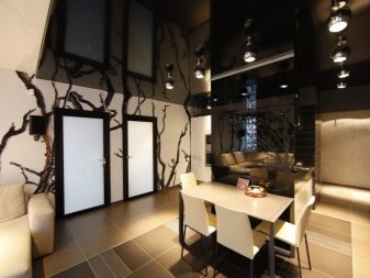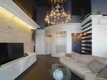 Трябва да се каже, че в повечето съвременни апартаменти все още е изпълнено с експерименти с черни тавани. Факт е, че тъмните тонове визуално приближават препятствие и затова горната част на стаята, направена в черно, е възможна само с височина на тавана от 3 метра и повече, в противен случай няма да е възможно да се избегне гравитацията..