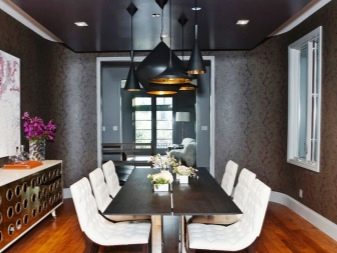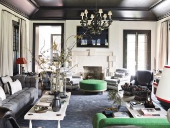 Собственикът, който сериозно реши да оборудва черен таван в дома си, със сигурност твърди, че е човек, който разбира стилове, но това означава, че цялата стая трябва да бъде поддържана в някаква единна посока. Тъй като черните тавани все още не са широко разпространени, на повечето хора им е трудно веднага да кажат как да ги комбинират с облицовки на стени и подове, както и с аксесоари за отличителен интериор в един или друг стил: