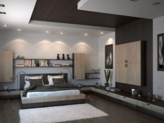 - За да запазите стила модерен много е важно да изоставите острите граници, като напълно се доверявате на плавния поток от обекти и линии. Задачата на черния таван при такива условия ще бъде зонирането на стаята..
