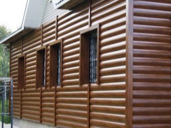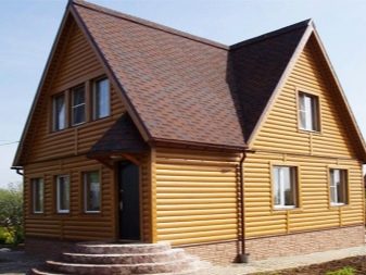 Къщата от стоманени блокове се счита за не по -малко популярен тип. Това е огънат профил, боядисан да изглежда като естествено дърво. Благодарение на този материал е възможно не само да се украсят фасадите, но и да се извърши висококачествена топлоизолация. Основното предимство на продукта е неговата супер здравина, но подобно на виниловите панели, материалът е подходящ само за външна декорация, тъй като изглежда непрезентабелно отвътре..