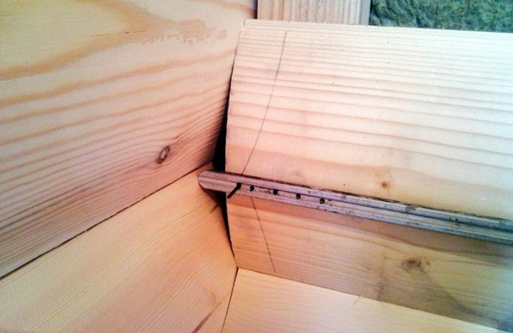 Ако блоковата къща е монтирана хоризонтално, тогава на първо място долният ъгъл трябва да бъде обвит.. Панелът се монтира на профила и се фиксира по цялата дължина със скоба, която от своя страна е прикрепена към щайгата със самонарезни винтове. След това вторият панел се вкарва в фрезата, неговият жлеб трябва да “гледа” надолу.