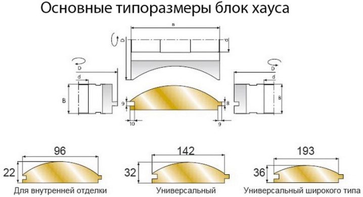 Материалът се произвежда в различни размери, което прави възможно използването му както за вътрешна, така и за външна декорация. Облицовката на помещенията, като правило, се извършва с помощта на дървена блокова къща със сечение 46 * 180 мм, а метални или винилови панели се избират за довършване на сгради отвън..