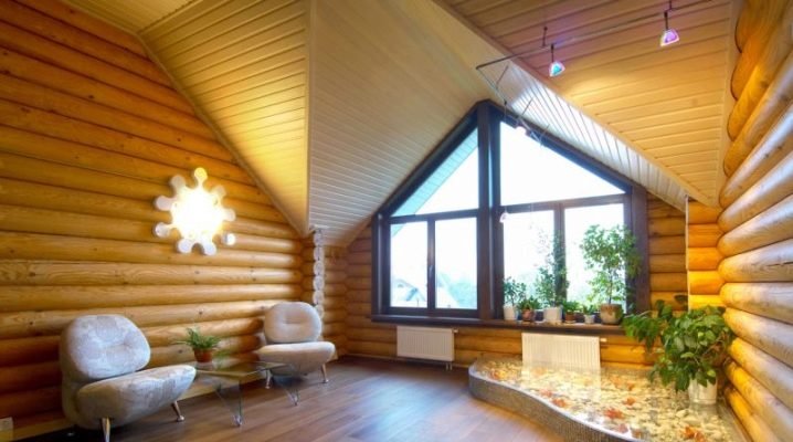 Що се отнася до дизайна на ъглите отвътре, те са украсени с пръчка 5 × 5 см или специални первази. В същото време експертите съветват да се монтират гредите преди облицовка. Това прави финала по -привлекателен..