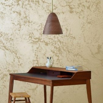 Такива покрития могат да бъдат избрани за всеки вкус и цвят. Има възможност за смесване на многоцветни нюанси, което ви позволява да получите индивидуален цвят на повърхността. Също така сред огромния асортимент има необичайни цветове, разпръснати. Стените, които са покрити с текстуриран продукт, наподобяват венецианска мазилка. Сребърните, бронзовите и златните цветове имитират метал.
