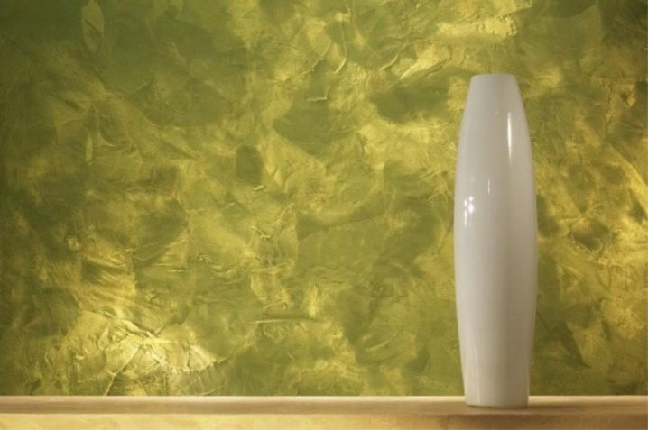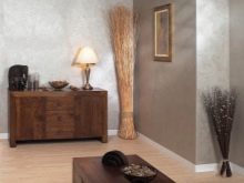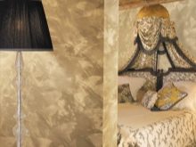 - Седеф с метални нотки – нанесен върху стените в няколко слоя. Такива покрития са бронзови, сребърни, златни..