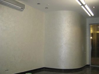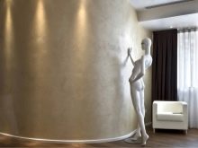 - Мокра коприна. Първо ще трябва да засадите грунд върху повърхността и да го оставите да изсъхне. След това нанесете основното покритие с помощта на венецианска мистрия. Оставете да изсъхне и добавете друг слой боя с помощта на пластмасова шпатула. За да разпределите оцветяващия състав по стената, правете кръгови движения: така получавате ефектни къдрици, които променят текстурата.