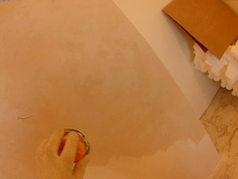 - Набръчкана коприна. Нанесете грунд и изчакайте материалът да изсъхне. След това можете да започнете да нанасяте основното покритие (за това е по -добре да използвате велурен валяк). Изчакайте няколко часа, оставете боята да изсъхне.