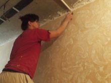 - След като подготвите стената, можете да започнете да нанасяте боя. Понякога основният слой е изравнен, но някои предпочитат да му придадат релеф, определена текстура.