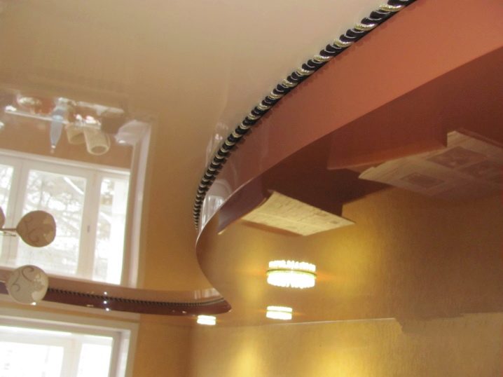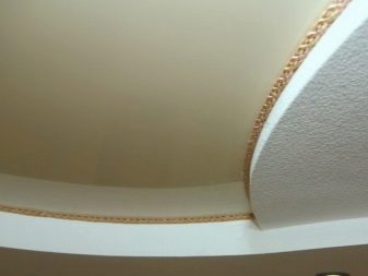 Декоративните дантели се използват не само за преодоляване на празнините, които се появяват по време на монтажа на опънат таван. Такъв материал често се използва за декоративно довършване на многостепенни таванни конструкции..