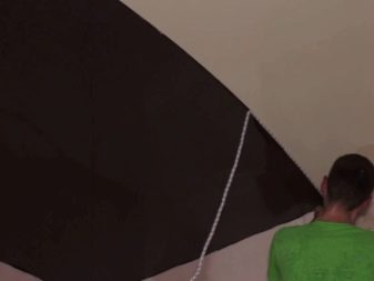 На профила на опънатия таван се нанася акрилен уплътнител. Работата трябва да започне от един от ъглите. Шнурът се притиска към уплътнителния слой и постепенно се разпределя по цялата дължина. Тъй като кантът има малка маса, захващането ще се случи доста бързо..