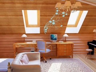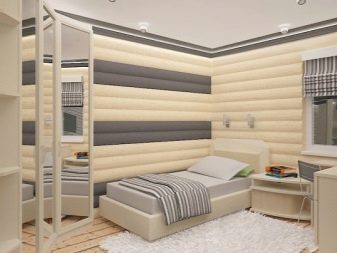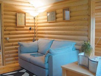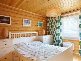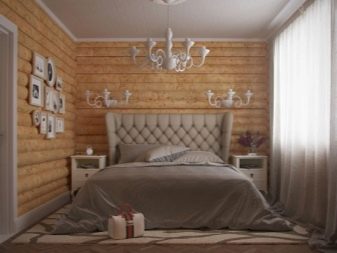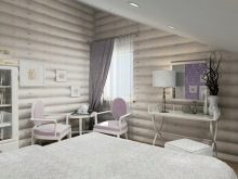 За дневни и спални е по -добре да изберете по -леки опции, възможна е комбинация от няколко различни типа блок къща. Ако се използват панели за заоблени трупи, те ще привлекат вниманието. В този случай мебелите и аксесоарите трябва да имат прости форми, да бъдат доста сдържани..