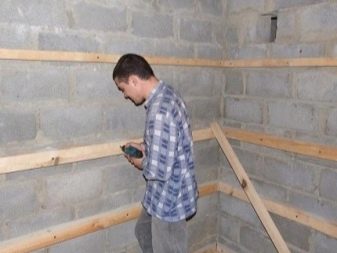 Блок къщата е монтирана върху дървена щайга, която се сглобява от решетки. Разстоянието между тях е 45-50 см. В този случай, по време на монтажа на рамката, измерванията трябва да се правят редовно – някъде е необходимо да се премахне излишната височина на пръта, докато в други области е необходим субстрат. Рамката се закрепва със самонарезни винтове.
