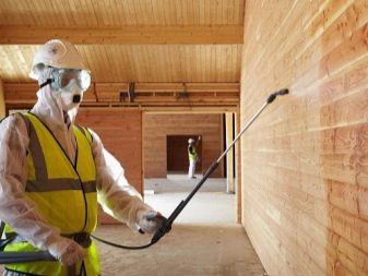 Следващият етап е прилагането на антисептици и огнезащитни средства.. Въпреки факта, че преди монтажа материалът вече е бил импрегниран с тези съединения, именно тази технология гарантира повишаване на огнеустойчивостта и биостабилността на дървесината..
