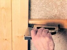 След като завършите инсталирането на рамката, можете да продължите към закрепването на блоковата къща, като крепежни елементи се използват винтове или скоби.