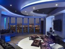 Последният писък на модата – многостепенни тавани от гипсокартон с лампи, LED осветление или вложки от опънат плат.