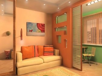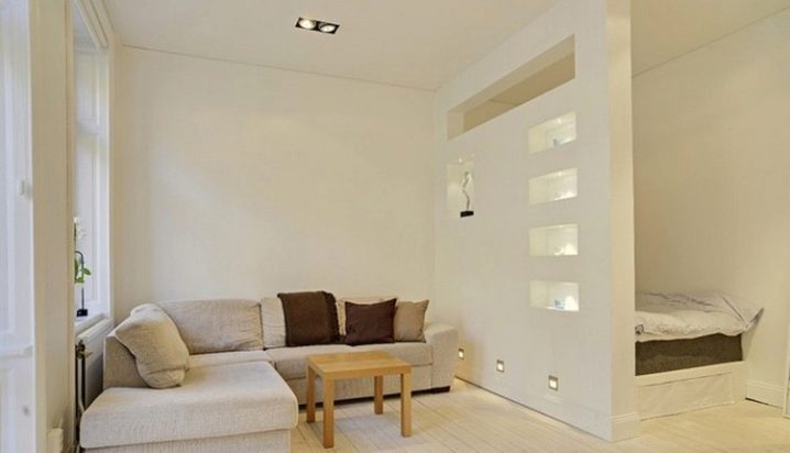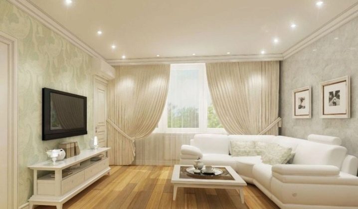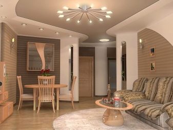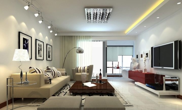 Независимо от размера на апартамента, жилищните зони могат да бъдат подчертани с висококачествено осветление. Разстоянието от тавана до гипсокартона трябва да съответства на размера на лампите, а устройствата трябва да се допълват взаимно и да не са твърде ярки.