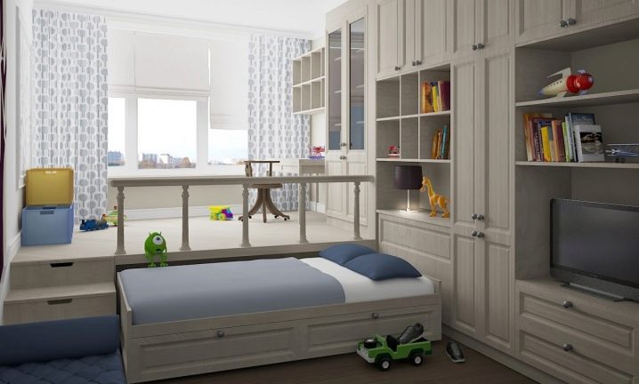 Интересна идея за подиума: най -отдолу можете да скриете кутии с играчки, а най -отгоре можете да поставите фотьойл и компютърна маса.
