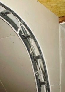 Получените размери се нанасят върху гипсокартона и се изрязват. На мястото на работа се монтира метална рамка, полага се осветление и едва след това конструкцията се обшива с гипсокартон. В такава структура собственикът може да осигури икономка и ниши за рафтове..