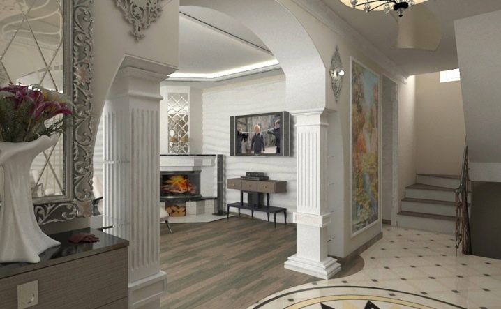 Колоните от гипсокартон, декорирани с декоративна мазилка или гипсови корнизи, ще се превърнат в изящна декорация на коридора..