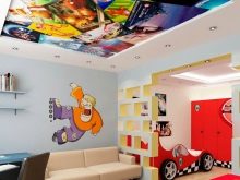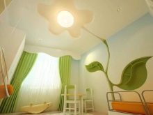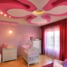 Платното от гипсокартон изглежда оригинално както с опънато звездно небе, така и с фототапети и с витражи. Дайте цветове на таваните в детската стая или “уредете” върху тях силуети на любимите си герои.
