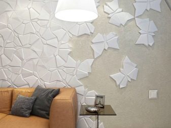 Релеф може да се създаде и върху гладка гипсокартон. Гипс или декоративна мазилка се купува в магазини за хардуер, обемни 3D изображения се правят по поръчка, а декоративните тухли се изрязват от остатъците от гипсокартон със собствените си ръце..
