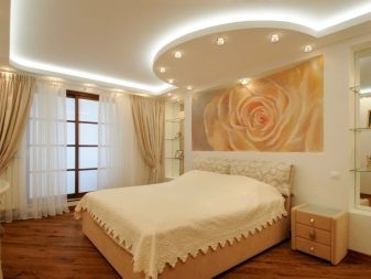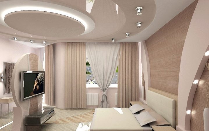 Конструкцията от гипсокартон в кухнята ще маскира вентилационните тръби и хармонично ще впише вентилационната кутия в кухненския дизайн. В интериора на спалнята правоъгълни или овални нива изглеждат впечатляващи, сякаш насочва вниманието към спалното легло.