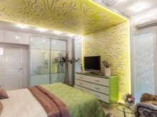 В малка стая такъв дизайн ще изглежда обемист, но дори таванът на едно ниво с вградено осветление на място изглежда модерно и стилно. И това не отвлича вниманието от други интериорни предмети.