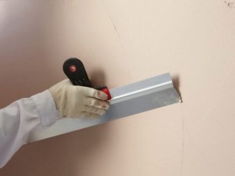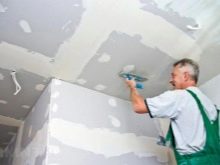 - Приложение. Шпакловката се нанася на малки порции върху голяма шпатула и се опъва по равнината на тавана. В края повърхността се шлайфа.