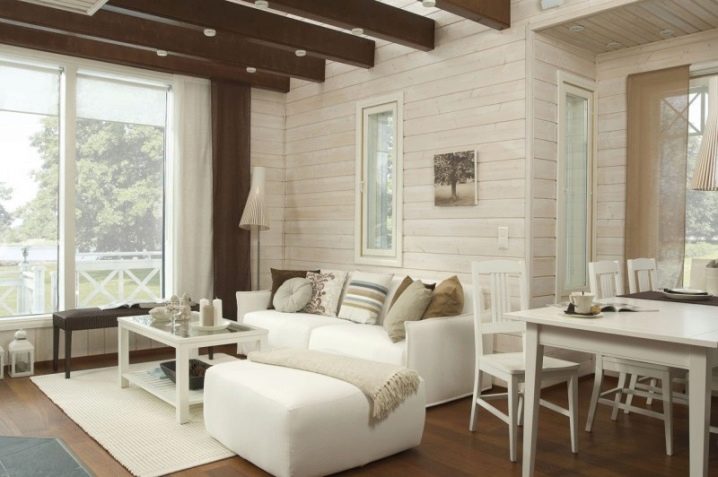 - Блоковата къща имитира декорацията на стените с дървен материал, облицованите с такъв материал сгради приличат на дървени дървени къщи.