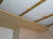 - Монтажът на облицовката към решетката се извършва с помощта на пирони, дюбели или скоби, понякога се извършва закрепване към самонарезни винтове. За работа с тавана се използват няколко вида крепежни елементи наведнъж, най -често това са скоби и винтове.