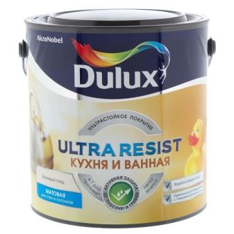 Друг достоен вариант е ултраустойчива латексова боя Dulux Ultra Resist за баня и кухня. Отличава се със своята устойчивост на механични повреди и полезни свойства, които предпазват помещението от гъбички и мухъл. Покритието е водоотблъскващо и отблъскващо мръсотията, устойчиво е на гореща пара, може да бъде матово и полуматово. Боята е оптимална и за детски стаи, обществени пространства с повишено експлоатационно натоварване..