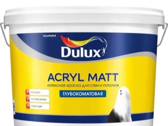- Дълбока мат латексова боя Dulux Acryl Matt може да запази цвета си за дълго време, не избледнява, използва се за вътрешни и външни стени както за умерено влажни помещения, така и за помещения с висок индекс на влажност. Покритието се измива с обикновена вода, без да се използват никакви средства.