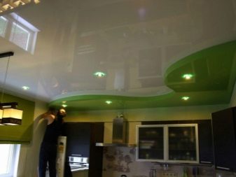 Изобщо не е необходимо декоративните елементи да бъдат неразделни: розовите „венчелистчета“, изолирани един от друг на обикновена бяла основа, също ще изглеждат необичайно красиви и елегантни. Гланцовите тавани, според някои от дизайнерите, се допълват най -добре от вита цветна конструкция в един от ъглите, стърчащи над равнината. Снимката показва пример за такъв дизайн, използващ зелено..