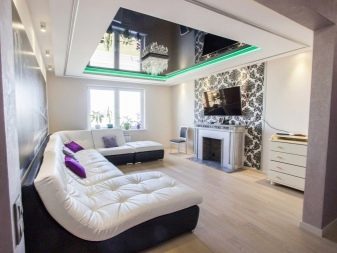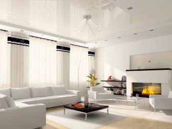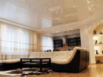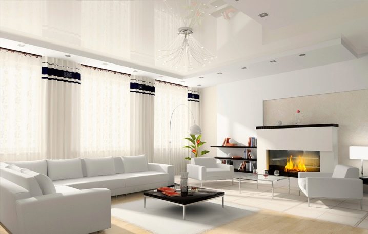 За тесни и дълги помещения трябва да изберете светли лъскави тавани, тъмните могат да се използват само в големи помещения.