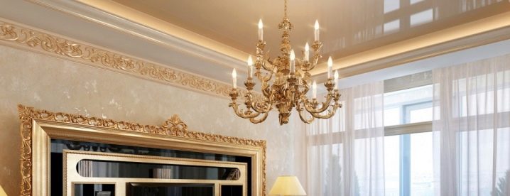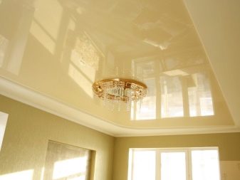- Гланцово. Те имат отразяваща способност до 90%, поради което се постига ефектът на огледална повърхност. Смята се, че лъскавият таван ви позволява визуално да увеличите площта на стаята. Това твърдение обаче е вярно само при правилния избор на цвят на тавана..