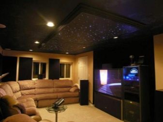 - Оптично влакно. Допълнителните елементи на осветителната система служат за създаване на красив блясък, подчертават текстурата на тавана.