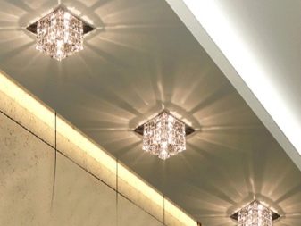 Основното осветление обикновено се монтира в центъра или в един от ъглите на първото ниво (най -високата част на тавана), допълнително осветление по периметъра на второто ниво или на повърхността му на равни интервали.