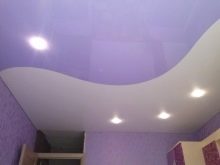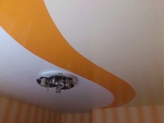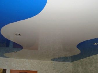 - Таван на едно ниво. Многоцветните платна в този дизайн са взаимосвързани и приличат на един продукт. По време на монтажа не са необходими допълнителни материали, така че тази опция за довършителни работи е по-достъпна от опцията на много нива..