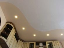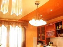- Практичност. Опънатите тавани се почистват лесно. Шевовете, които фиксират двете части, са практически невидими, прах и мръсотия не влизат в тях. С влажна кърпа или парцал можете да изтриете мръсотията, дори сажди могат лесно да бъдат отстранени (например в кухнята).
