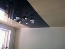 - Ако таваните са ниски, по -добре е да ги украсите с лъскав филм, той има огледален ефект, поради което липсата на височина се елиминира визуално. Напротив, високите тавани трябва да бъдат украсени с матов филм..