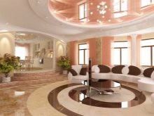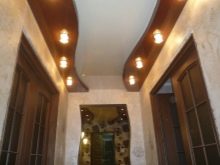 - Многоетажен таван. Всеки слой на такава шарнирна система е различен по цвят. За да го инсталирате, са необходими допълнителни конструкции и повече време, отколкото за предишната опция, в резултат на това разходите за инсталиране на многостепенен таван са многократно по-високи.