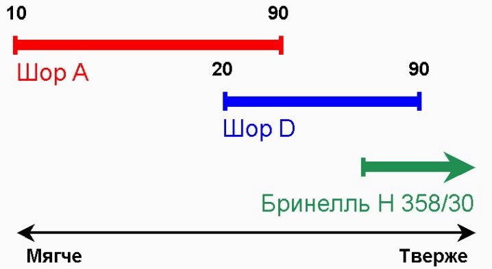 Най -важният показател, посочен в списъка на техническите характеристики на уплътнителя, е твърдостта по Шор. Това е метод за измерване на твърдостта на композицията. Получените резултати се представят като числова стойност с буква, съответстваща на скалата. Високата твърдост се определя от голямо число. Буквата А означава по -меки показатели, буквата D означава по -твърди.